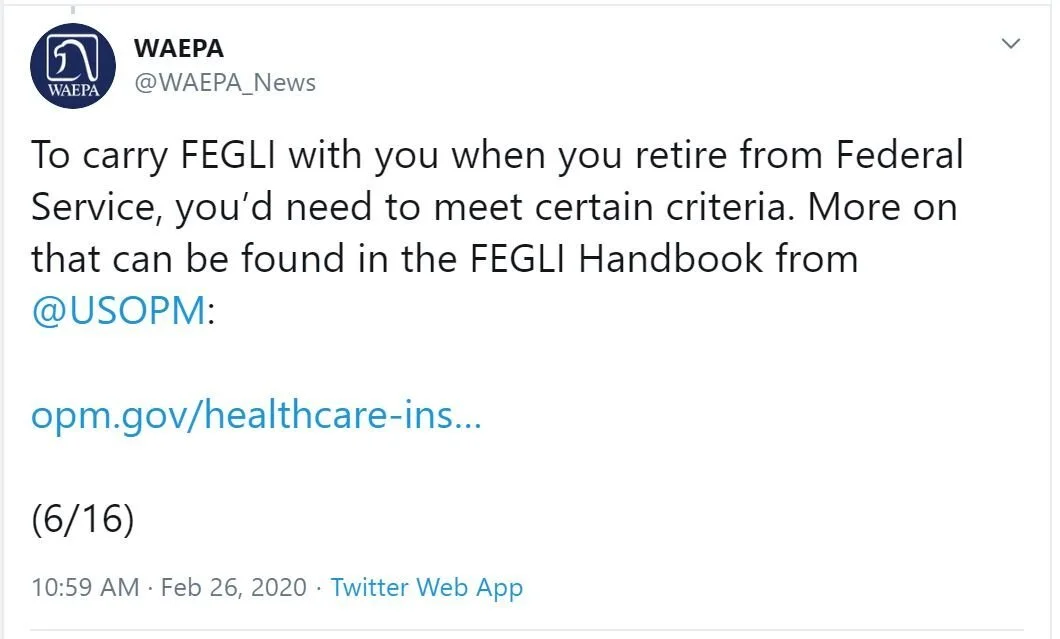 Your Questions about FEGLI and WAEPA, Answered. Via Twitter!